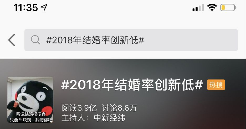 一個新話題 #2018年結婚率創(chuàng)新低 #