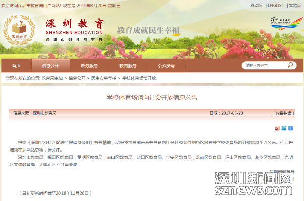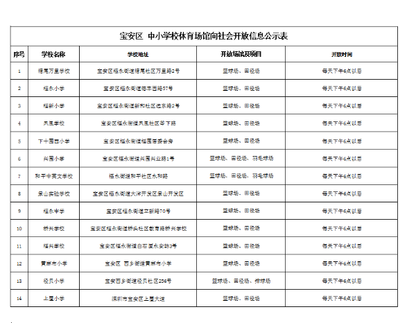 深圳市教育局關(guān)于學(xué)校體育館向社會(huì)開(kāi)放的信息公告
