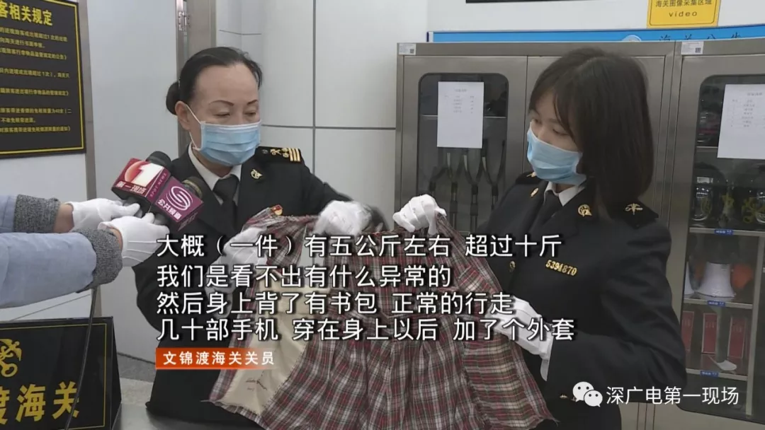 今年1月24號(hào),一群學(xué)童從香港放學(xué)歸來,其中5名學(xué)童在文錦渡口岸入境時(shí),安全檢測(cè)門突然報(bào)警,引起了海關(guān)關(guān)員的注意,經(jīng)過檢查發(fā)現(xiàn),這五名學(xué)童身上都穿了一件特制背心,背心里面有多個(gè)夾層,每個(gè)夾層里面都放著手機(jī)、口紅、面膜等走私品。