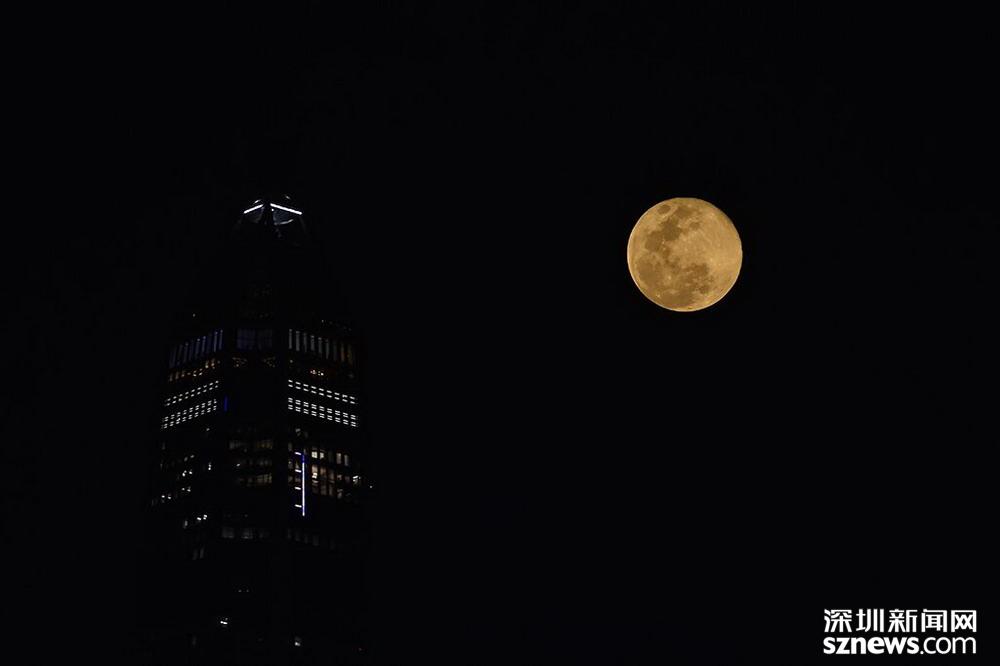 平安大廈樓頂旁,月亮出現(xiàn)(圖為二次曝光)