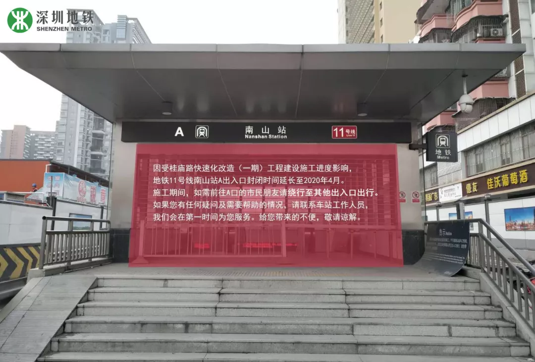 因受桂廟路快速化改造(一期)工程建設(shè)施工進(jìn)度影響,11號線南山站A出入口封閉時(shí)間將延長至2020年4月。施工期間,如需前往A口的市民朋友請繞行至其他出入口出行,如果您有任何疑問及需要幫助的情況,請聯(lián)系車站工作人員,我們會(huì)在第一時(shí)間為您服務(wù)。給您帶來的不便,敬請諒解。
