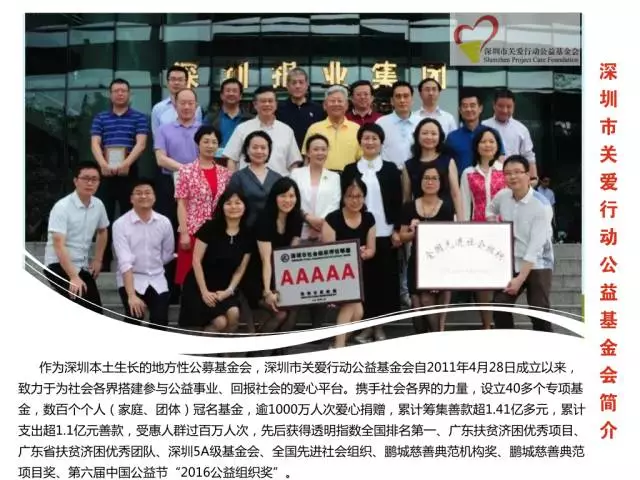 他說,深圳是一座因為廣泛開展關愛活動而更加令人矚目、受人尊敬的愛心之城,而深圳市關愛行動公益基金會就是為了推動關愛行動而誕生的。多年來,關愛基金會凝聚了數(shù)千萬人次愛心捐贈,推出和資助的關愛項目數(shù)千個,累計籌集善款逾2億元,公益支出超1.65億元,受惠人群數(shù)百萬人次。因此也榮獲深圳市首家5A級基金會、全國先進社會組織等系列榮譽??梢哉f,深圳市關愛行動公益基金會為深圳這座文明和諧的關愛之城做出了重大貢獻。而這愛心成果的背后,是在座各位及社會各界愛心人士的共同努力、共同愛心奉獻的結(jié)果!“關愛路長,善者致遠,今年是新中國成立70周年,是脫貧攻堅、決勝全面建成小康社會的關鍵之年。深圳作為改革開放的受益者,在新的歷史起點上,我們應繼續(xù)秉承深圳“關愛、感恩、回報”的精神,奮力擔當新的偉大歷史使命,為建設更加繁榮美好的祖國和幸福家園繼續(xù)努力!”
