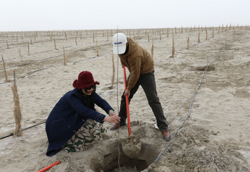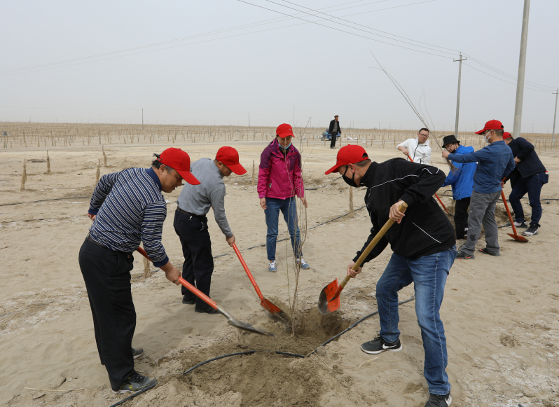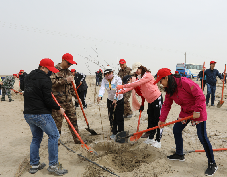 每年春秋兩季,麥蓋提縣約10萬名干部群眾都要到沙漠里植樹
