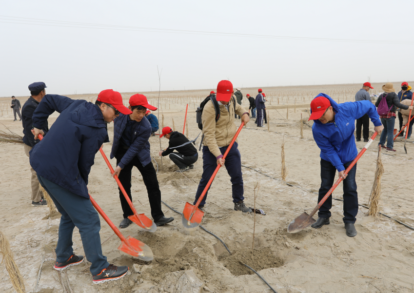 共120余人在麥蓋提縣百萬畝防風固沙林基地