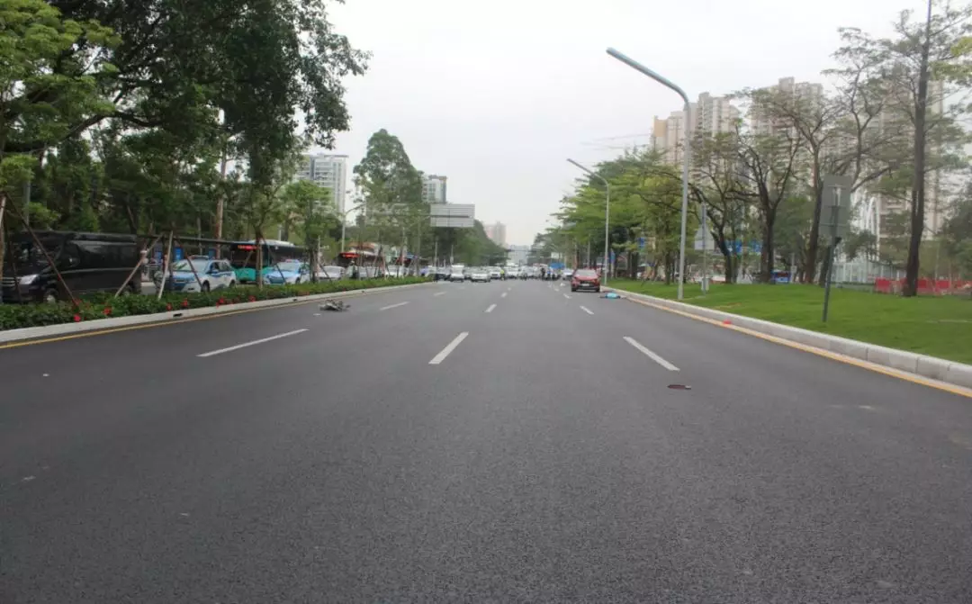 案發(fā)現(xiàn)場(chǎng)位于寶安區(qū)寶安大道新安街道中糧卡羅社區(qū)路段,南往北主道路寬13.72米,該路段設(shè)立有輔道及非機(jī)動(dòng)車(chē)道。瀝青路面,照明條件為白天,交通信號(hào)方式為標(biāo)志、標(biāo)線。
