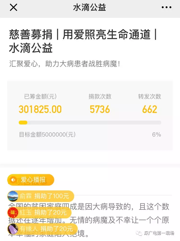20元、50元、100元,平臺上善款籌集信息在愛心廣播上滾動(dòng)著。截止4月2日晚上7點(diǎn)半,捐款次數(shù)超過了5736多次,轉(zhuǎn)發(fā)次數(shù)也達(dá)到了6百多,在大家一次次的愛心匯聚下,目前籌款已經(jīng)超過了30萬元。
