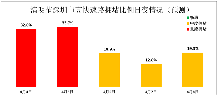 清明假期深圳市高快速路擁堵比例日變情況(預測)