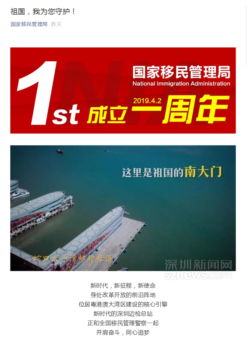 深圳邊檢總站做的這條視頻上了國家移民管理局的微信公眾號