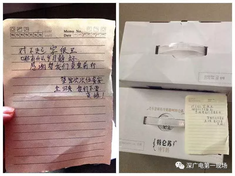 據(jù)消防員們介紹,收到的禮物中有牛奶、王老吉等飲料,有些是市民親自送上門的,有些則是由外賣員送來的,跟禮物一起的還有一些信件和紙條,也許從這里面,我們可知一二。