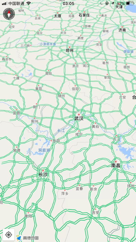 再隨便來看凌晨3點(diǎn)05分的幾個(gè)城市,重慶、武漢、長沙、南昌等,周邊路況顯示良好。