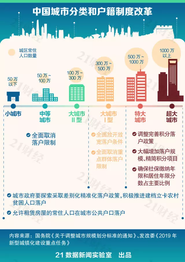 4月8日,國家發(fā)展改革委官網(wǎng)發(fā)布了《2019年新型城鎮(zhèn)化建設(shè)重點任務(wù)》(以下簡稱《任務(wù)》)的通知。通知指出,要繼續(xù)加大戶籍制度改革力度,在此前城區(qū)常住人口100萬以下的中小城市和小城鎮(zhèn)已陸續(xù)取消落戶限制的基礎(chǔ)上,城區(qū)常住人口100萬—300萬的Ⅱ型大城市要全面取消落戶限制;城區(qū)常住人口300萬—500萬的Ⅰ型大城市要全面放開放寬落戶條件,并全面取消重點群體落戶限制。