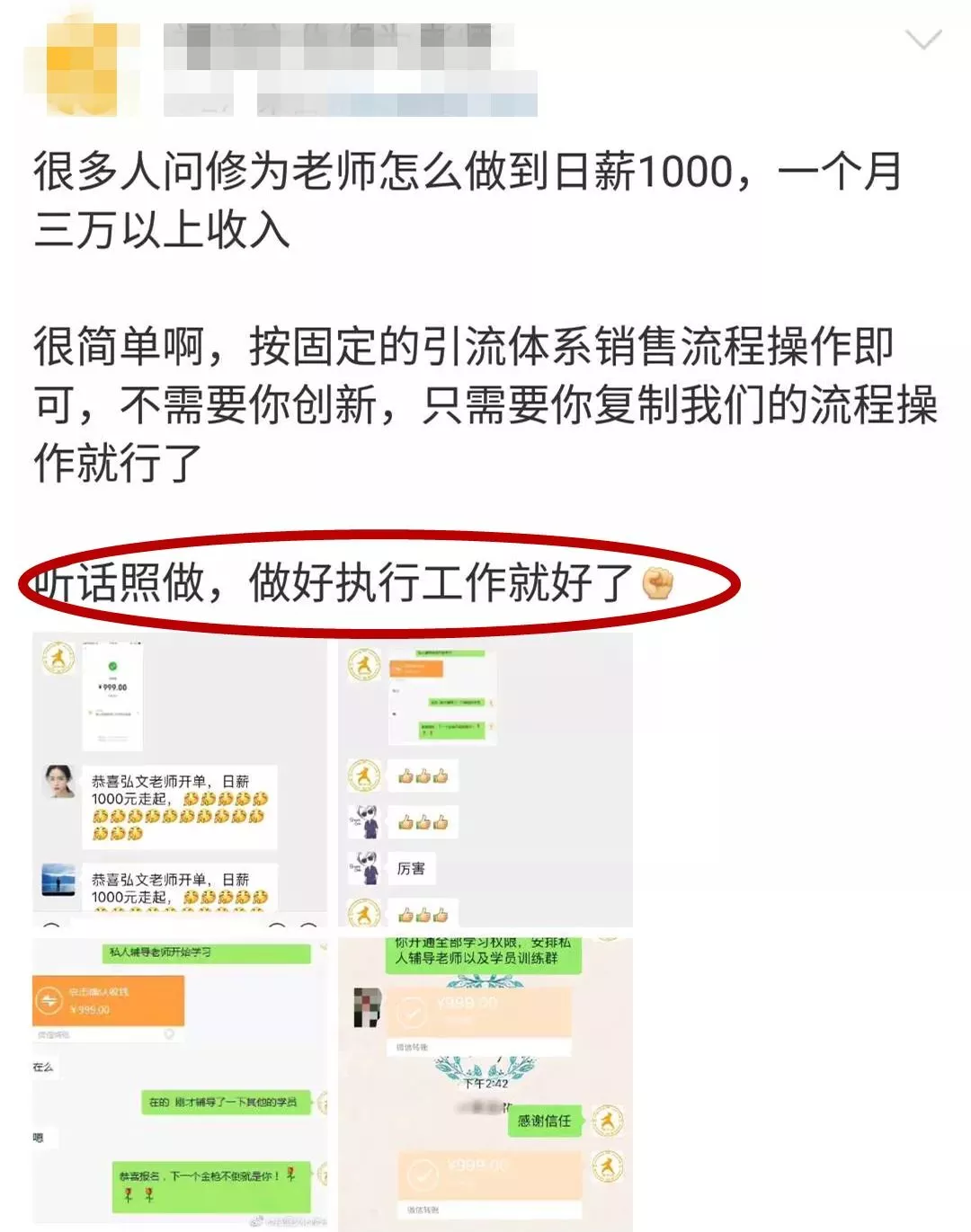 福道文化傳播有限公司從“服務(wù)老師”到“學(xué)員”,大多都是初中以下文化水平。一旦有新人繳納會(huì)費(fèi),該團(tuán)伙成員立刻將受害人拉入“會(huì)員群”。在各“會(huì)員群”內(nèi),群內(nèi)其他人努力活躍氣氛,分享連某整理的“生財(cái)之道”,只為讓新人再繳納5000至10萬(wàn)元不等的費(fèi)用。