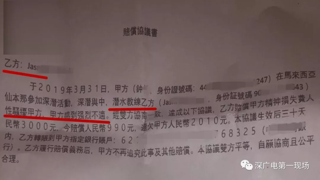 上了岸以后,氣憤的小鐘和小丹直接找到了旅行社負(fù)責(zé)人進(jìn)行投訴。而旅行社進(jìn)行調(diào)查后,發(fā)現(xiàn)該教練確實(shí)存在著性騷擾的行為,最后雙方達(dá)成了三千塊錢的賠償協(xié)議。