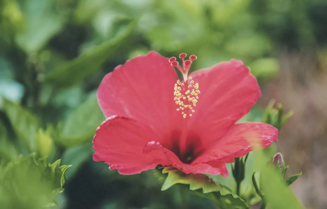 朱槿,也稱(chēng)扶桑,是常見(jiàn)的觀(guān)賞性植物,在溫暖的南方,四季都有花開(kāi),紅艷艷的花朵掛在枝頭,非常惹人喜愛(ài)。因?yàn)榛ǘ涠鄶?shù)大而紅,所以大家還給它起了一個(gè)淺顯易懂的俗名——大紅花。