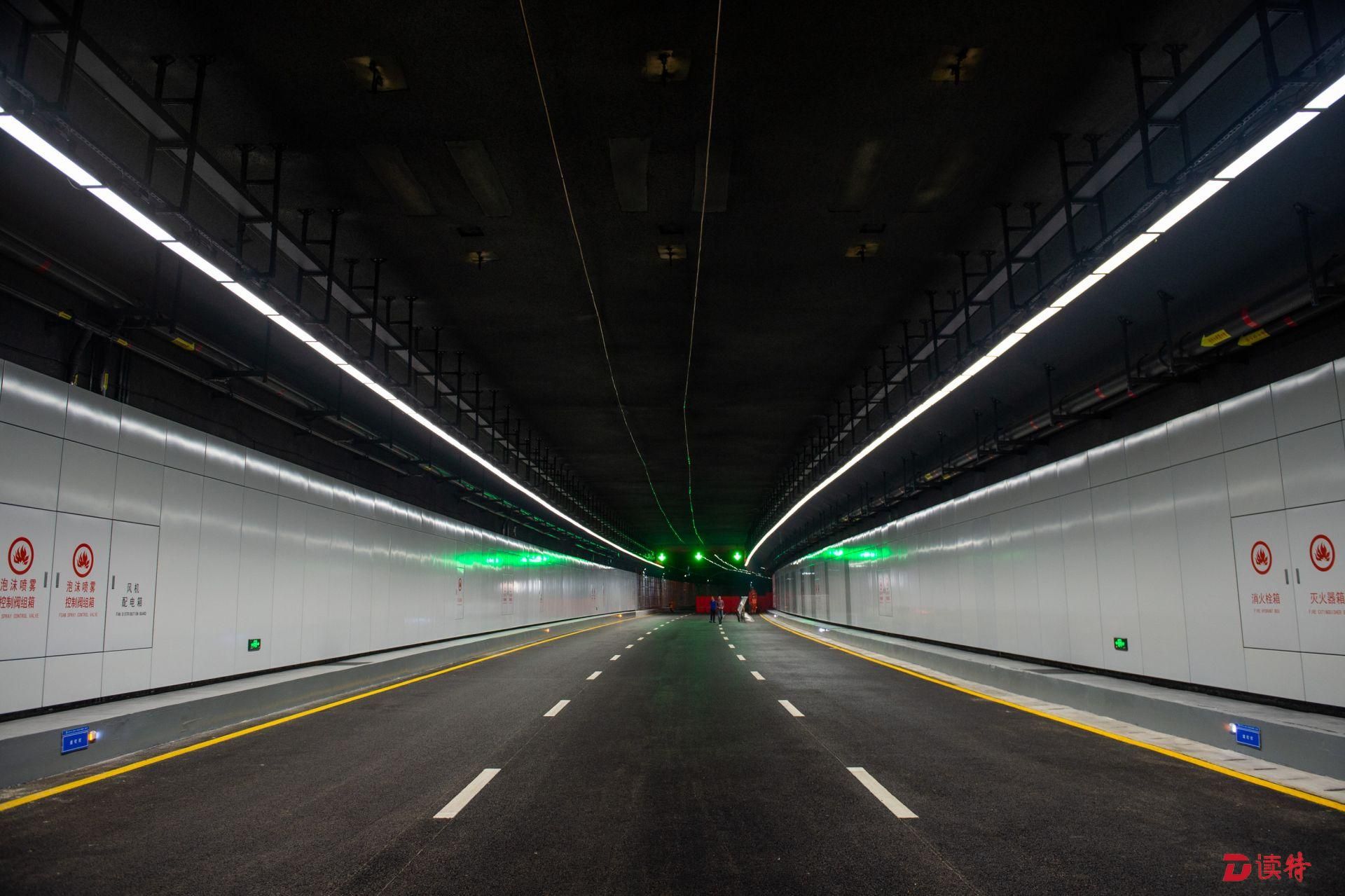 4月16日,讀特記者從臨海大道與前灣三路路口附近乘車進(jìn)入地下道路,看到前海地下道路已經(jīng)實現(xiàn)主體隧道貫通,項目進(jìn)入裝飾裝修和機(jī)電設(shè)備安裝階段,工人正在隧道內(nèi)安裝照明、通風(fēng)、排水、消防等設(shè)施。在項目工程樣版段,記者看到隧道兩側(cè)的已經(jīng)裝好搪瓷鋼板,頂部的連續(xù)燈帶和交通指示燈也已經(jīng)安裝到位,地面上也已經(jīng)劃好了分道線。中鐵四局機(jī)電公司相關(guān)負(fù)責(zé)人表示,目前前海地下道路機(jī)電裝修工程樣板已經(jīng)順利通過驗收,為接下來大面積機(jī)電裝修施工提供了標(biāo)準(zhǔn)指引。該負(fù)責(zé)人表示:“全線共安排了一百多名工人,分區(qū)域進(jìn)行設(shè)備安裝和裝飾裝修,將確保項目年底竣工、2020年初通車,為前海發(fā)展提供更好交通保障。”
