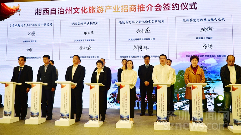 湘西州文化旅游產(chǎn)業(yè)推介會(huì)是“湘西自治州2019年湖南-粵港澳大灣區(qū)投資貿(mào)易洽談周”的重頭戲之一,由湘西自治州人民政府主辦,湘西州文化旅游廣電局承辦。會(huì)上簽約的8個(gè)旅游項(xiàng)目分別是:吉首市乾州牛莊時(shí)尚文藝小鎮(zhèn)項(xiàng)目、瀘溪縣浦市古韻項(xiàng)目、鳳凰縣飛水谷委托經(jīng)營(yíng)管理項(xiàng)目、花垣縣蚩尤故里苗族文化城項(xiàng)目、保靖縣府庫(kù)紅石海景區(qū)項(xiàng)目、永順縣青坪鎮(zhèn)太平村“生態(tài)旅游康養(yǎng)度假區(qū)”項(xiàng)目、龍山縣太平山景區(qū)旅游項(xiàng)目、湘西吉鳳山生龍歡樂(lè)世界項(xiàng)目。國(guó)內(nèi)外眾多知名文化旅游投資商落戶湘西,標(biāo)志著湘西正成為一方潛力無(wú)限的文化旅游投資熱土和產(chǎn)業(yè)高地。