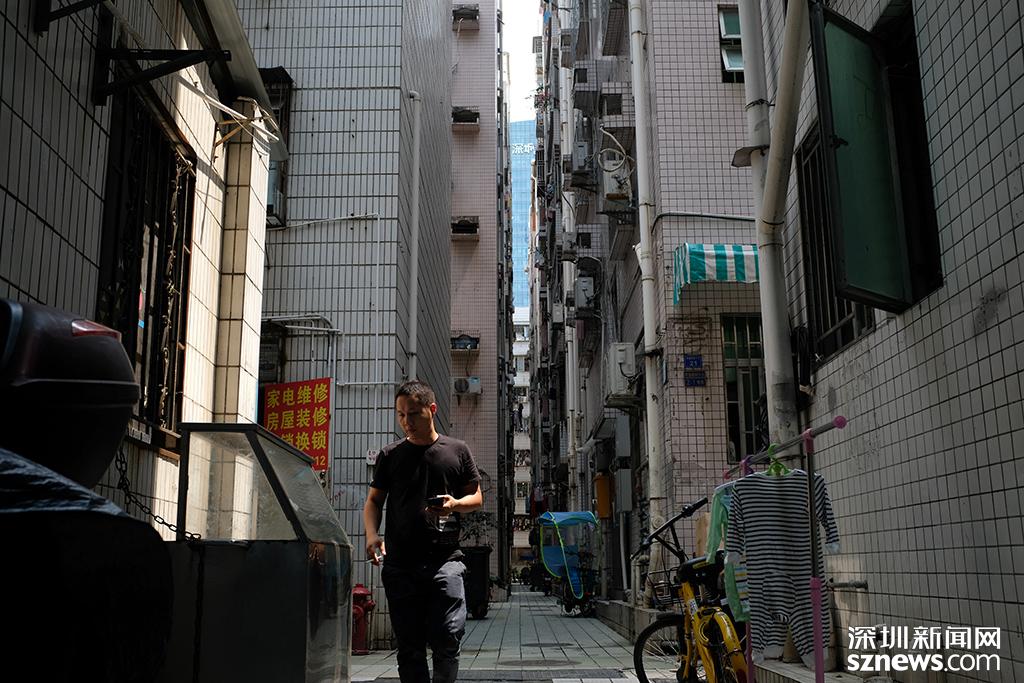 蔡屋圍內(nèi)部,后方為深城投大廈