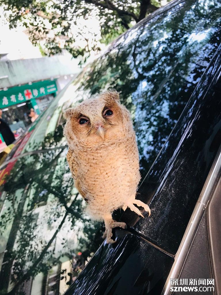 深圳新聞網(wǎng)2019年4月25日訊(記者 鄭曉鵬)今日早上8點(diǎn)多,一只小貓頭鷹停留在蓮花北村小區(qū)一輛小汽車上,路過的市民紛紛圍觀拍照。