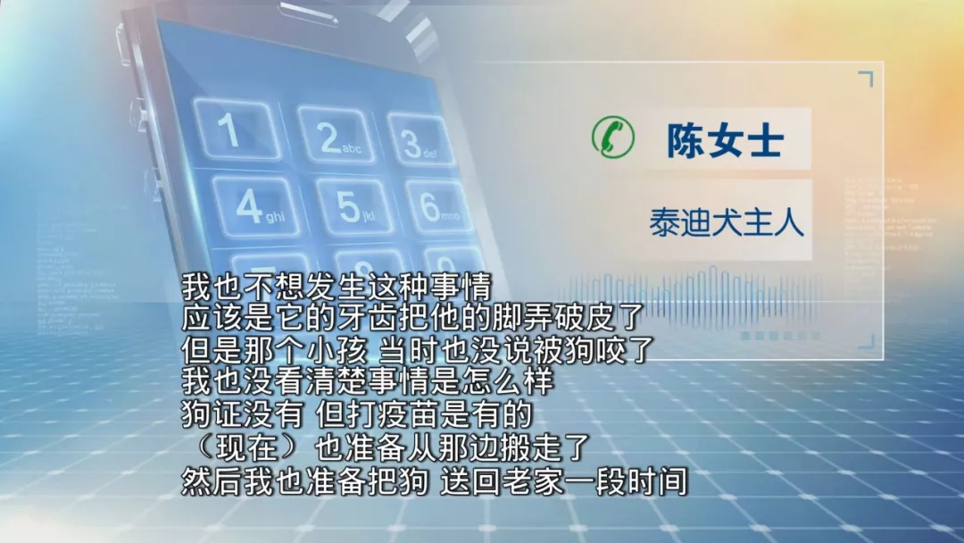 今天早上,城管部門也前往了小區(qū)了解情況,但涉事的狗主陳女士并不在家。記者隨后電話聯(lián)系到上陳女士,對方表示,這只泰迪犬她已經(jīng)養(yǎng)了兩年,每年都有去注射狂犬疫苗。