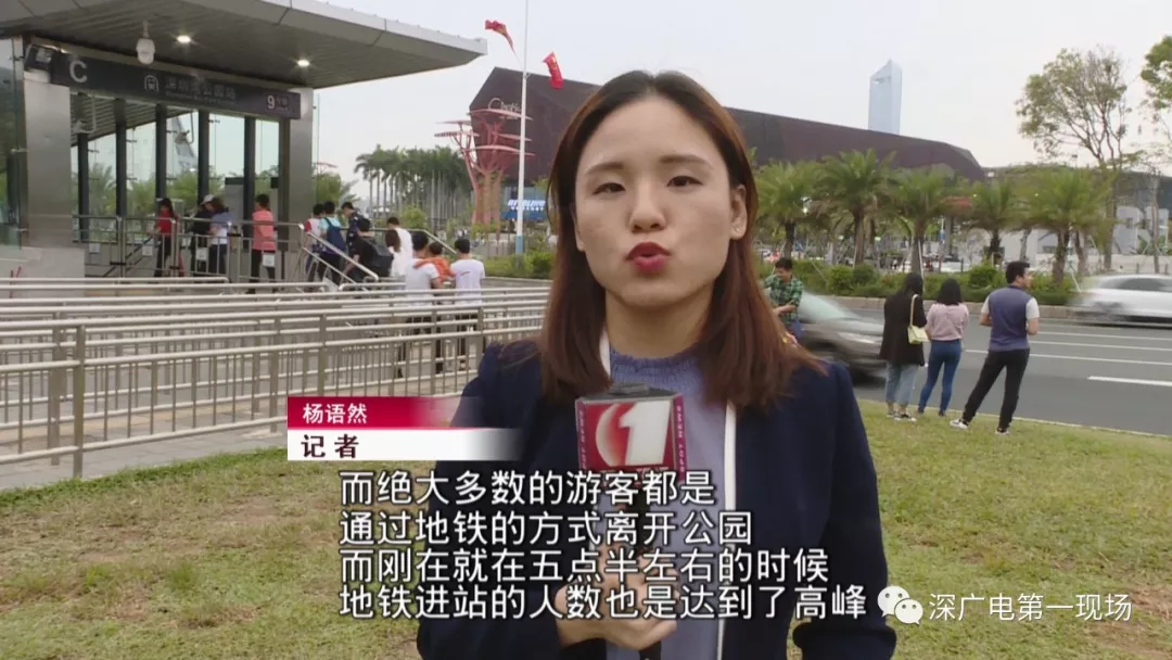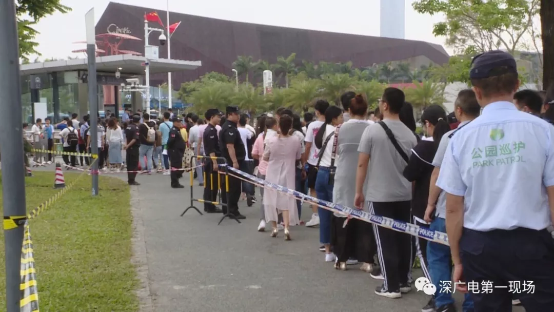 從下午5點(diǎn)半開始,園內(nèi)游客逐漸散去,深圳灣公園地鐵站兩個進(jìn)站口外,排隊(duì)的人都超過了百米,安保人員增設(shè)了鐵馬來維持現(xiàn)場秩序。
