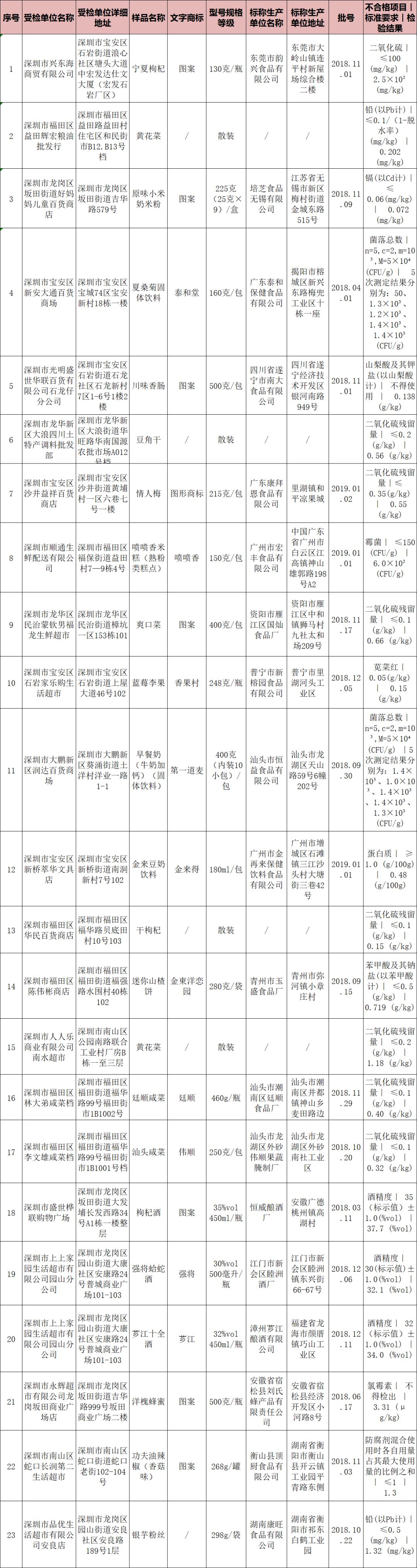 本次共抽檢流通環(huán)節(jié)食品2131批次,涉及流通環(huán)節(jié)經營主體529家次,共檢測食品指標13373項次。其中檢出不合格樣品23批次,涉及不合格食品類別有茶葉及相關制品1批次,淀粉及淀粉制品1批次,蜂產品1批次,糕點1批次,酒類3批次,肉制品1批次,蔬菜制品6批次,水果制品4批次,特殊膳食食品1批次,調味品1批次,飲料3批次;涉及不合格項目類別為獸藥殘留、金屬等元素污染、微生物污染、食品添加劑、品質指標。