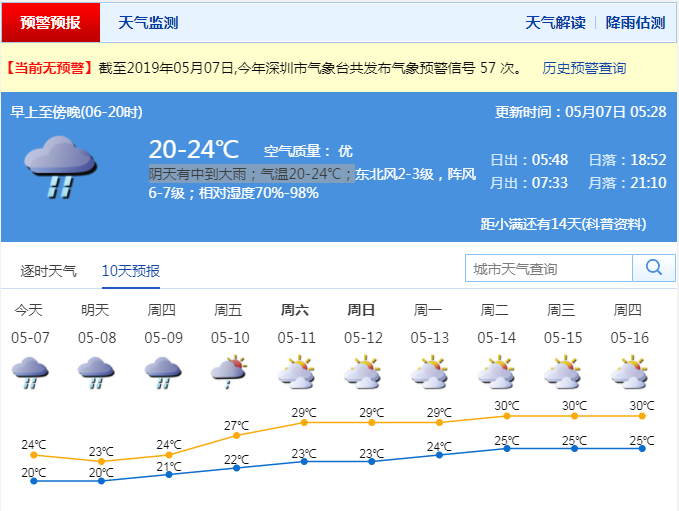 深圳新聞網(wǎng)5月7日訊(記者 陳婕)5月6日是“立夏”節(jié)氣,但受陰雨天氣影響,全市氣溫在22℃徘徊,最高氣溫甚至比去年“冬至”還低。記者從市氣象局了解到,預(yù)計(jì)7-9日,深圳有明顯降水,沿海高地和海區(qū)最大陣風(fēng)7級左右。