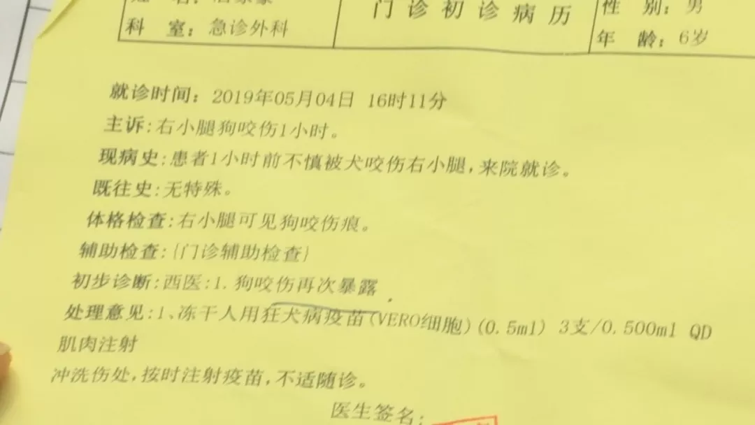 陶女士告訴記者,他們一家住在龍崗愛聯(lián),前些天兒子在附近玩耍,被突然從車底鉆出來(lái)的狗給咬傷了,事后她立馬帶兒子去醫(yī)院做檢查并打了狂犬疫苗。