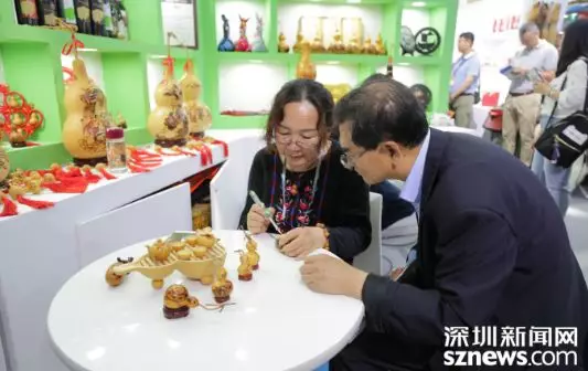 葫蘆刻繪展區(qū),傳承人在介紹葫蘆畫的繪制。深圳新聞網記者 潘潤華 攝