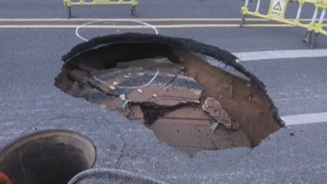 發(fā)現(xiàn)道路中間有個(gè)大坑