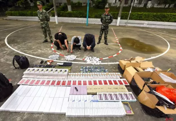 5月17日,十中隊(duì)官兵查獲一起飛線走私,這是清點(diǎn)繳獲的走私物資現(xiàn)場(chǎng)。