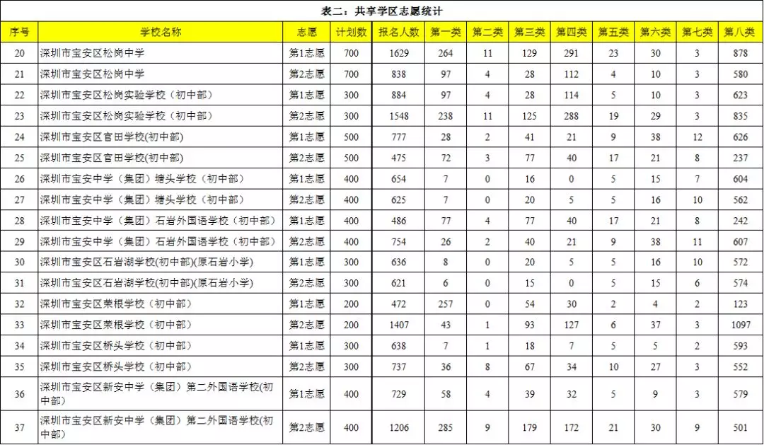 表二:共享學(xué)區(qū)志愿統(tǒng)計(jì)