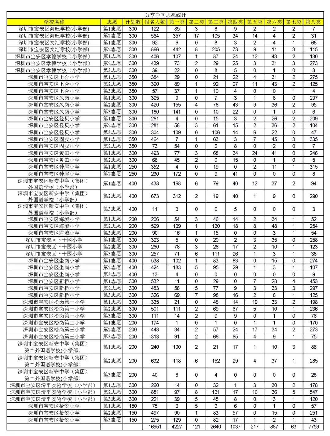 表三:分享學(xué)區(qū)志愿統(tǒng)計(jì)