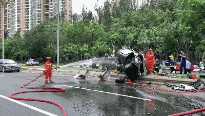記者在現(xiàn)場(chǎng)看到,消防人員一直在給車澆水散熱,在綠化帶上都是小車掉落出來(lái)的生活用品,現(xiàn)場(chǎng)是否有人員傷亡?