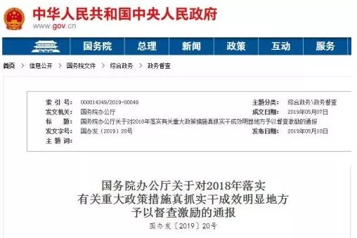 國務(wù)院辦公廳近日印發(fā)通報,對2018年落實重大政策措施真抓實干、取得明顯成效的24個省(區(qū)、市)、80個市(州)、120個縣(市、區(qū)、旗)等予以督查激勵,相應(yīng)采取30項獎勵支持措施。