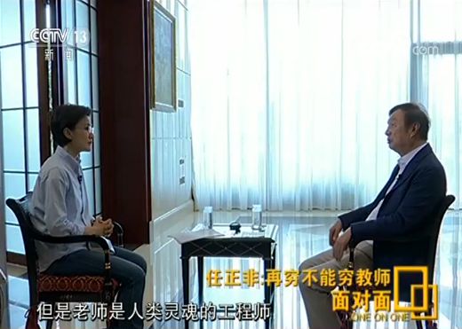 在1月17日,任正非接受《面對面》專訪中,任正非呼吁,把教育做好,國家才有未來。因此,要提高老師的待遇,再窮也不能窮教師,要讓優(yōu)秀的人才愿意去當(dāng)老師,讓優(yōu)秀的孩子愿意學(xué)師范,這樣就可以實(shí)現(xiàn)“用最優(yōu)秀的人去培養(yǎng)更優(yōu)秀的人”。而四個月后的這次采訪,他最想呼吁的依然是提高老師的待遇,再窮不能窮教師,讓社會各界都來重視基礎(chǔ)教育。
