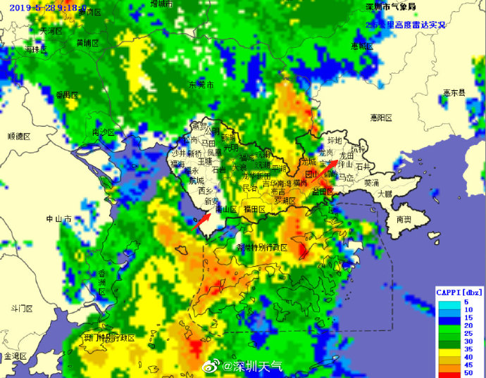 目前強(qiáng)降水中心已移至我市中部地區(qū),未來1-2小時(shí)內(nèi)東部地區(qū)將出現(xiàn)20-40毫米降水,深圳市氣象臺(tái)于2019年05月28日09時(shí)15分將暴雨黃色預(yù)警擴(kuò)展至全市,全市進(jìn)入暴雨戒備狀態(tài),請(qǐng)注意防范。