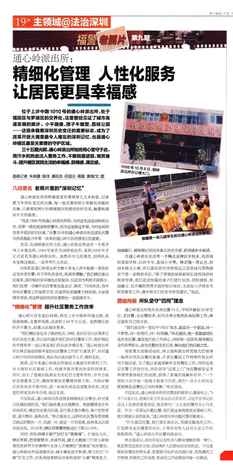 “我是1996年到通心嶺派出所的,當時這里還是園嶺派出所,我第一感覺就是特別繁華,因為這里臨近羅湖,當時是深圳改革開放的前沿區(qū)域?!睆木?5年的通心嶺派出所巡邏隊民警馮偉思提起當年第一次來到通心嶺片區(qū)的感受記憶猶新。