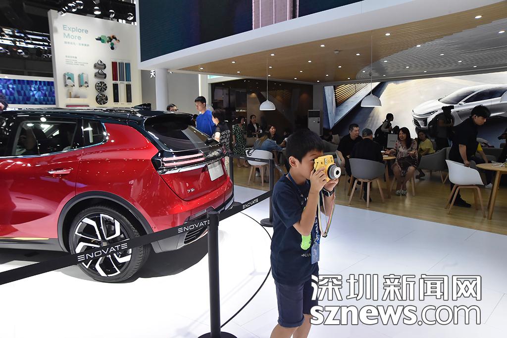 車展現(xiàn)場,一位小攝影師拿起相機拍攝