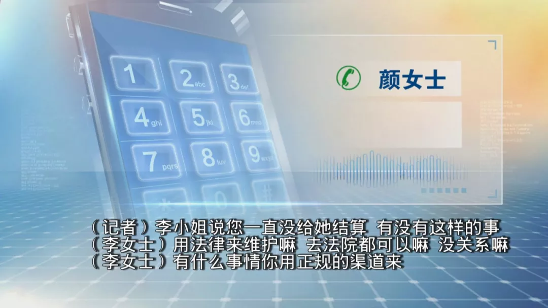 隨后記者撥通顏女士電話,記者表明身份后,試圖向顏女士核實,李小姐反映的墊付4萬多元貨款未歸還的問題。