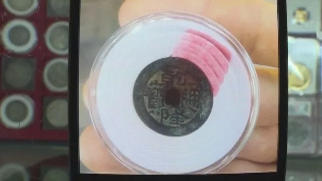 他的寶貝是一枚“乾隆通寶”錢幣