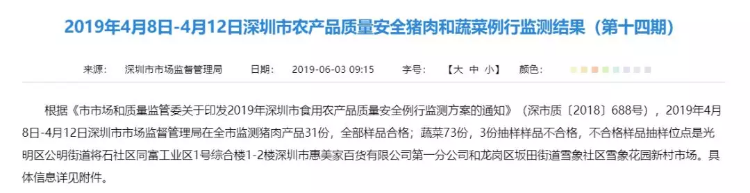 新的一期菜肉抽檢通報
