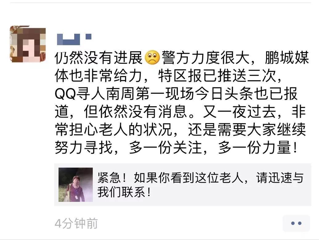讀特、深圳特區(qū)報微信公眾號發(fā)出尋人信息后,網(wǎng)友們紛紛在朋友圈轉(zhuǎn)發(fā),希望更多人看到信息,多一份力量。