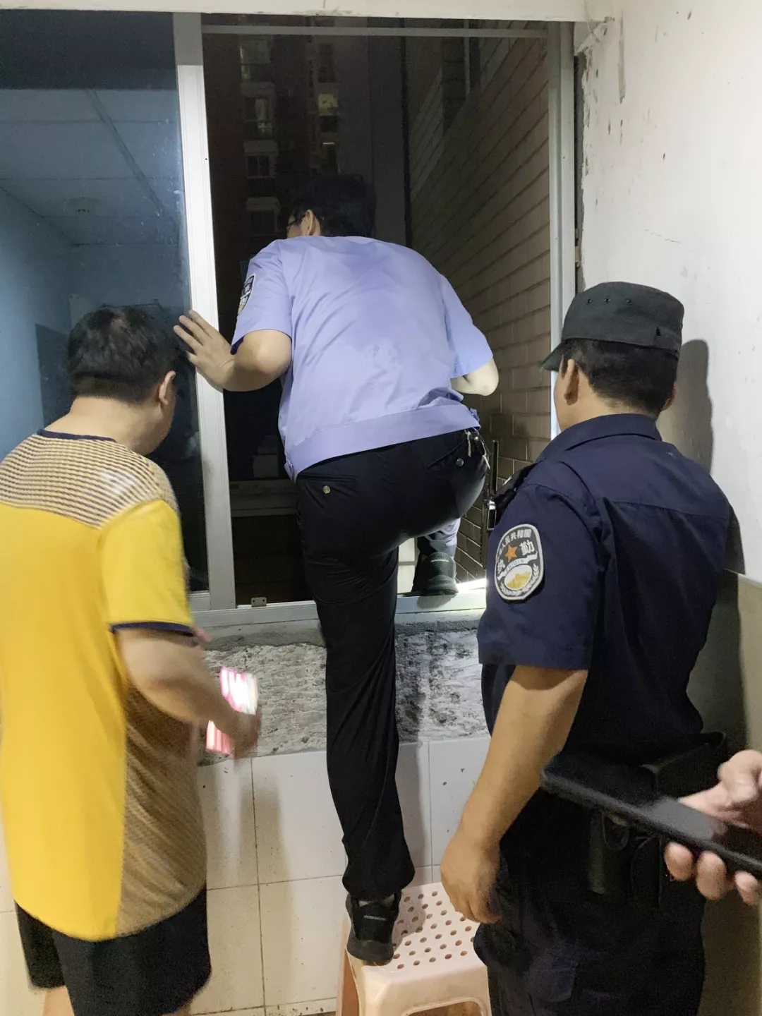時(shí)間一分一秒地流逝,救援工作難以繼續(xù),跳樓女子情緒越來(lái)越激動(dòng)……現(xiàn)場(chǎng),劉智所長(zhǎng)當(dāng)機(jī)立斷,突然做出了一個(gè)驚人的舉動(dòng):只身一人,在沒(méi)有任何保護(hù)措施的情況下,跳到窗外平臺(tái)上,與兩名跳樓女子進(jìn)行溝通,并嘗試慢慢靠近,抓住機(jī)會(huì)實(shí)施營(yíng)救。