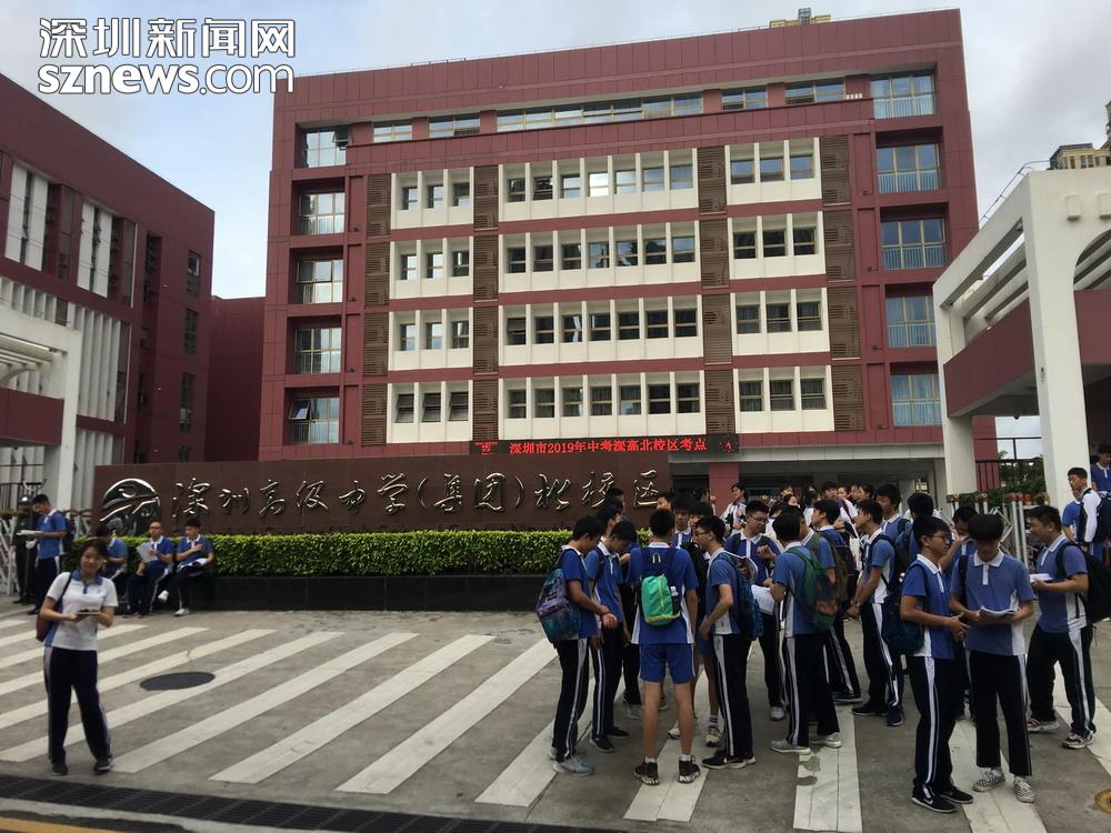 22日上午7時(shí),學(xué)生正在深圳高級(jí)中學(xué)(集團(tuán))北校區(qū)校外候考,有些學(xué)生還在復(fù)習(xí)知識(shí)點(diǎn),有些則以聊天交談緩解考前緊張的情緒。