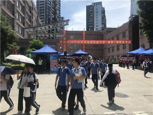 上午10時40分考試完畢,深圳高級中學(xué)考點的大部分考生笑逐顏開走出考場,有的考生還向守候在考場外的父母做出勝利的手勢。
