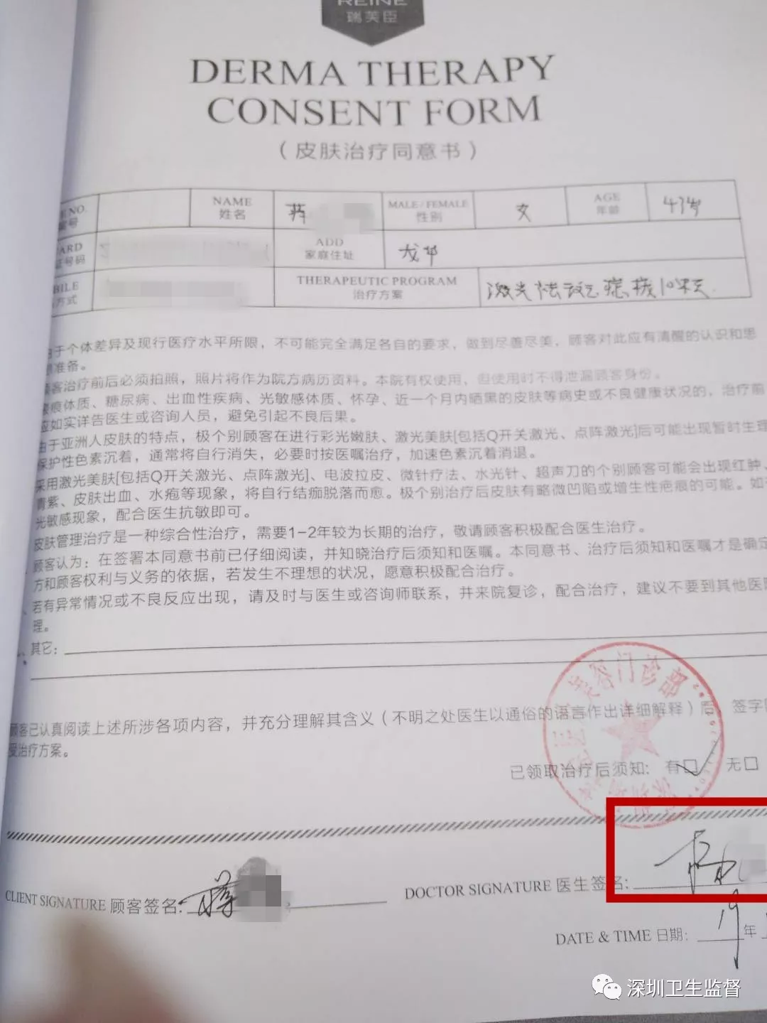 皮膚治療同意書和治療記錄表