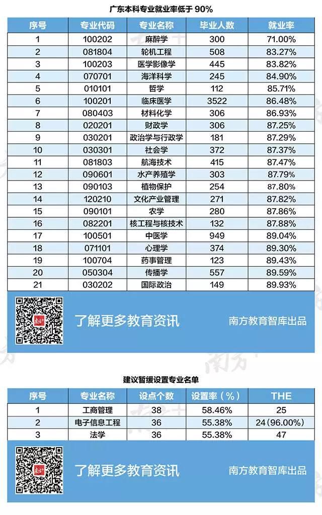 2018年廣東本科畢業(yè)生初次就業(yè)率為93.84%。就業(yè)率最高前20名中,屬工科類的專業(yè)最多,有10個(gè)。