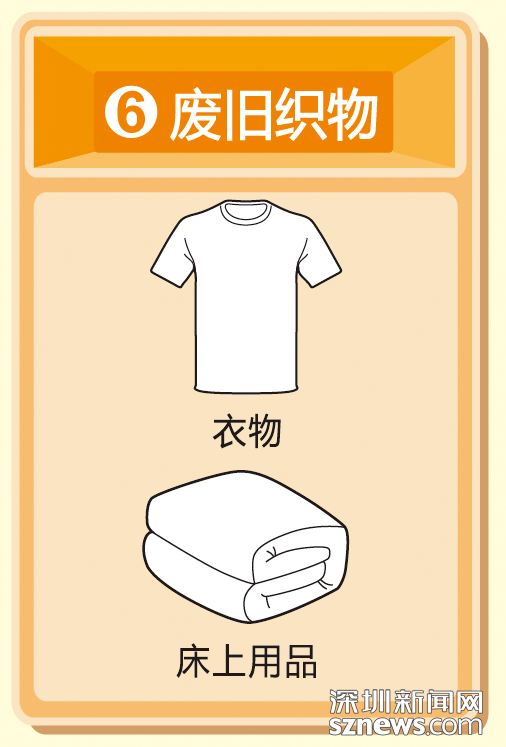 注:破襪子、舊內(nèi)衣褲、拖布及污損嚴(yán)重的織物應(yīng)投放至其他垃圾收集容器。