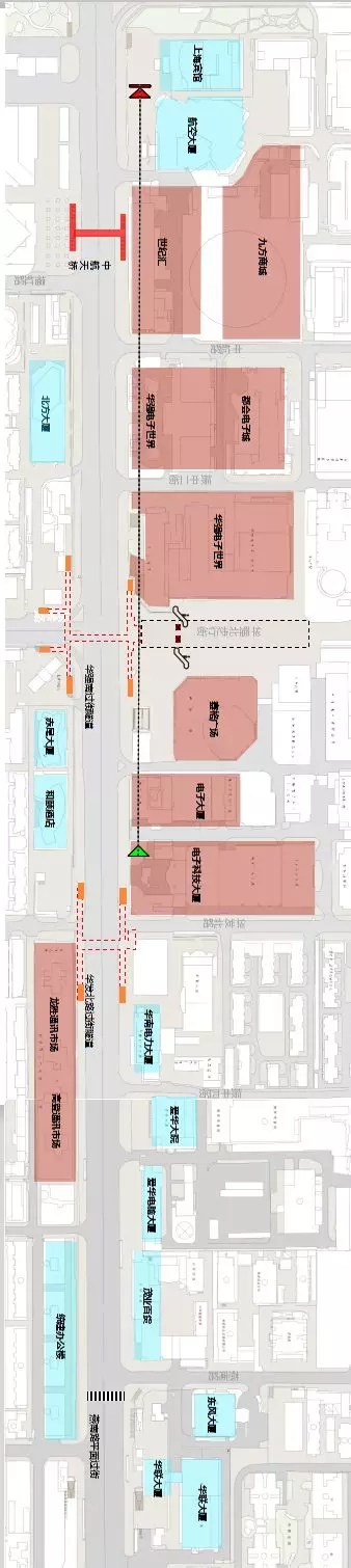 中航天橋、華強(qiáng)南地下過街隧道、華發(fā)北路過街隧道以及燕南路地面過街斑馬線。