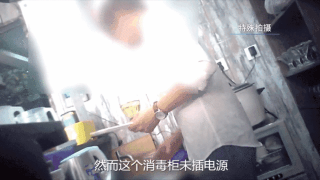然而這個(gè)消毒柜未插電源,似乎已經(jīng)有段時(shí)間沒(méi)有啟用了,店內(nèi)也沒(méi)有做過(guò)消毒記錄。